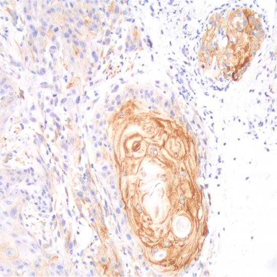 β-tubulin-III是微管蛋白β(tubulin-β)中最重要的亞型之一,β-tubulin-III可以控制細(xì)胞周期的進(jìn)程,并以此改變細(xì)胞的增殖分化、活性表達(dá)等生物學(xué)行為。β-tubulin-III與腫瘤的浸潤(rùn)程度呈密切相關(guān),高表達(dá)于結(jié)腸癌、惡性黑色素瘤、卵巢癌、肺癌等。