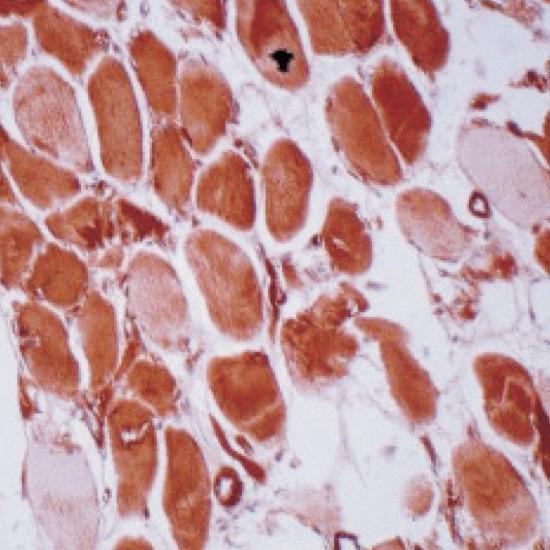 肌動蛋白(Actin)是生物體內(nèi)的一類結構保守型蛋白,共有6個亞型,Alpha-actin-2(ACTA2)是肌動蛋白的其中一個亞型,廣泛分布于平滑肌組織中。此抗體可識別人組織中的ACTA2。