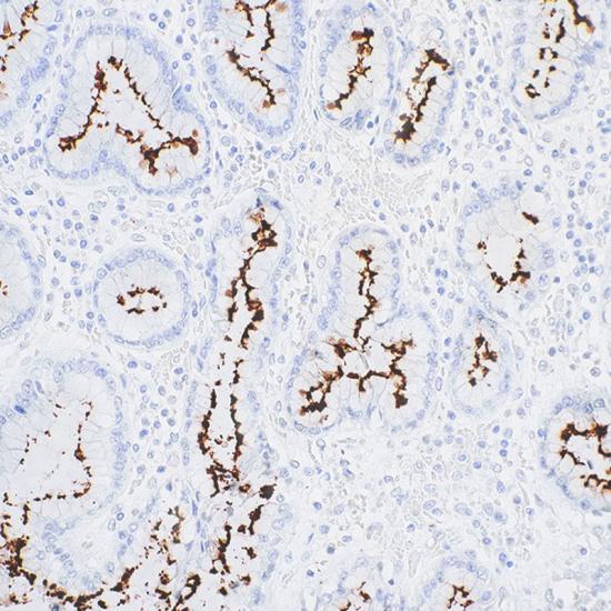 我國(guó)胃癌發(fā)病率居惡性腫瘤第2位,新發(fā)病例68萬(wàn)例,死亡49萬(wàn)例。研究表明:HP感染者均會(huì)引起慢性活動(dòng)性胃炎,在胃黏膜萎縮和腸化生的發(fā)生和發(fā)展中也起重要作用[1],HP感染和胃癌的發(fā)生密切相關(guān),根除HP是預(yù)防胃癌的有效措施。IHC染色特異性強(qiáng)、靈敏度高、陽(yáng)性準(zhǔn)確性高、易于判讀,便于各級(jí)醫(yī)院病理科開(kāi)展業(yè)務(wù),特別適合胃鏡活檢標(biāo)本量較大的情況,值得推廣[2-3]。